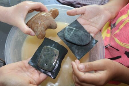 Wir waren wieder einmal fleißig und haben Specksteinketten hergestellt.